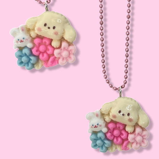 Pop Cutie Flower Puppy & Bunny Necklace - Handmade