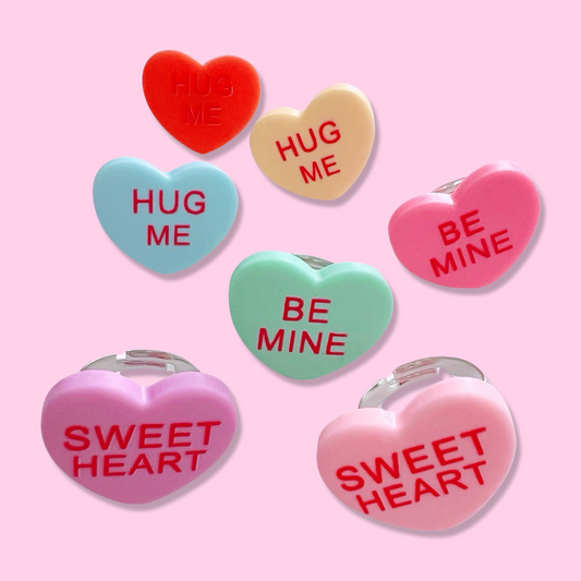 Pop Cutie Conversation Candy Heart Ring - Adjustable Kids Size Valentines
